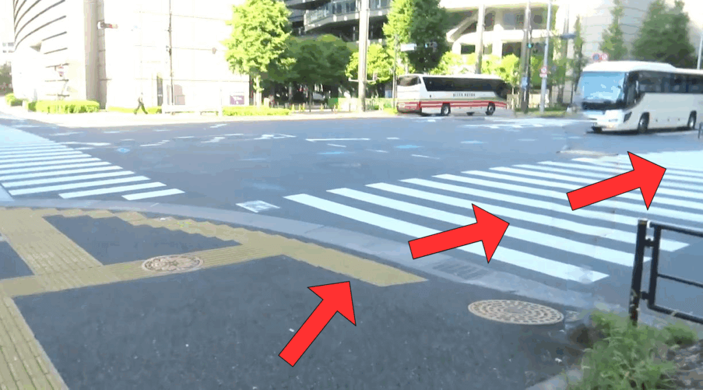 正面と右側に横断歩道があります