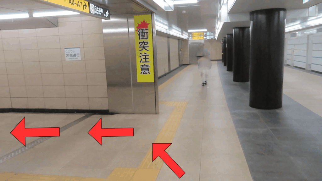 日比谷線まで95mの案内が出てきます