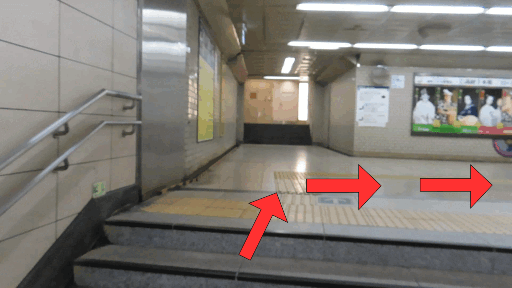 改札入って少し直進した後