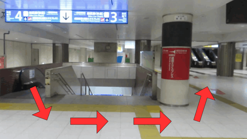 3・4番線は左後方に回り込みます