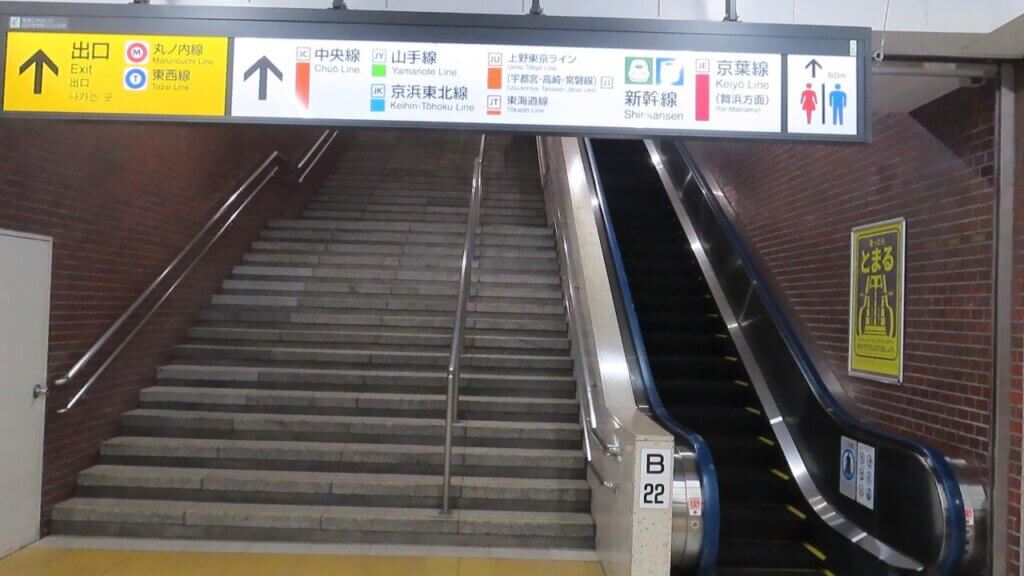 1号車で降車して丸の内地下中央口