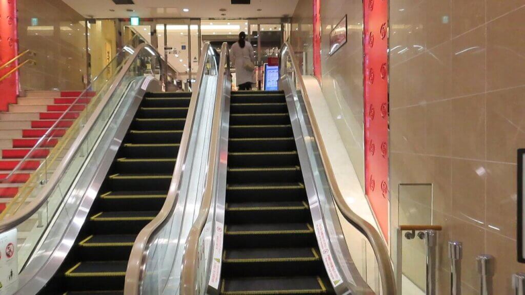 エスカレータあるので上がります