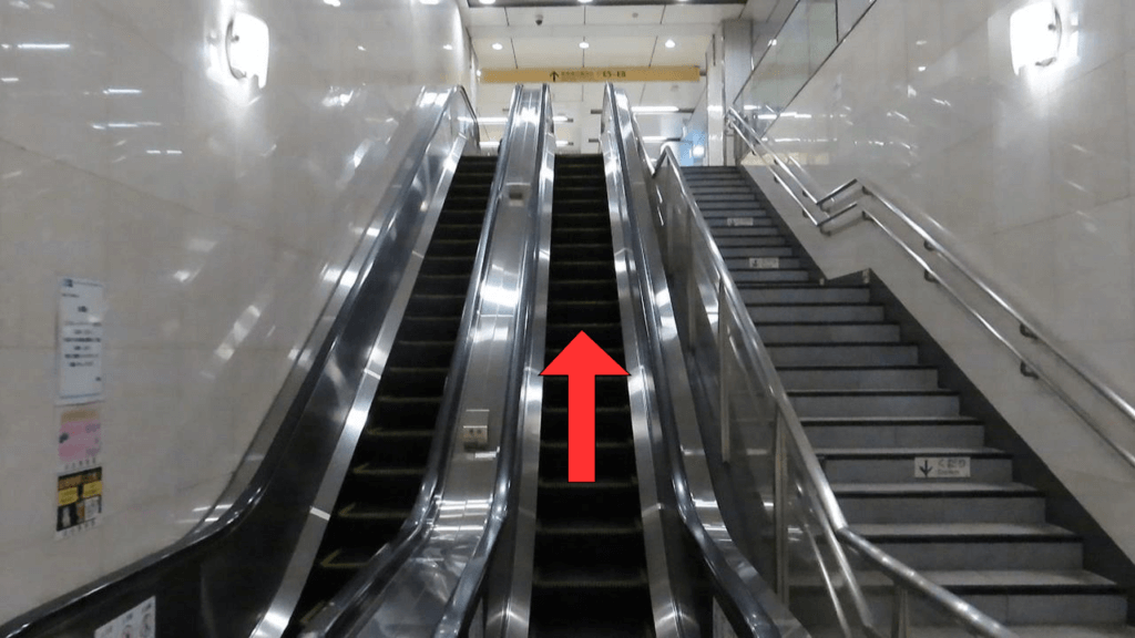 エスカレータで上がります