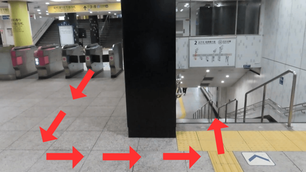 昭和通り北方面改札からホームまで