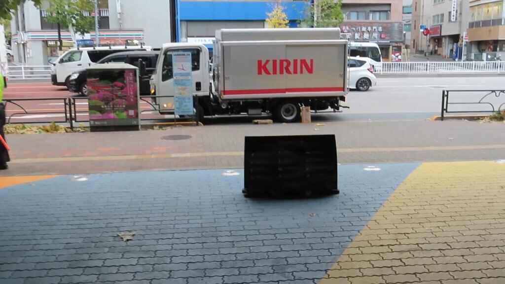 おりてすぐ左折します