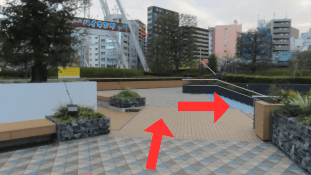 ②アトラクションズ出口から